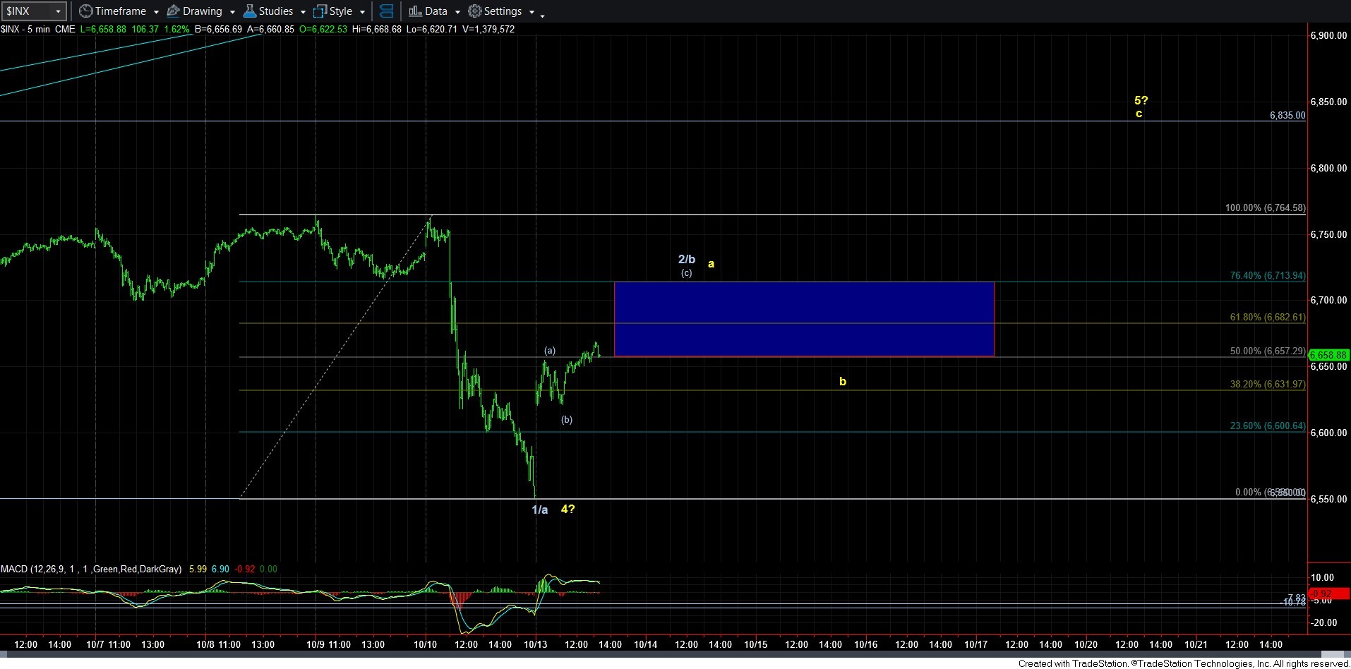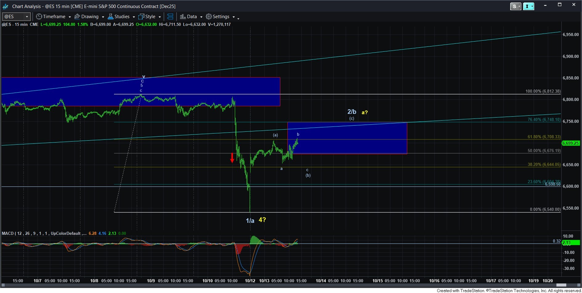 Another wrinkle in our charts is that the ES dropped a bit further than the SPX, which does cause a bit of complication. You see, the SPX can count as a 5-wave decline, whereas the ES really counts best as a 3-wave decline due to its after hours extension. I outlined this issue in the weekend update.