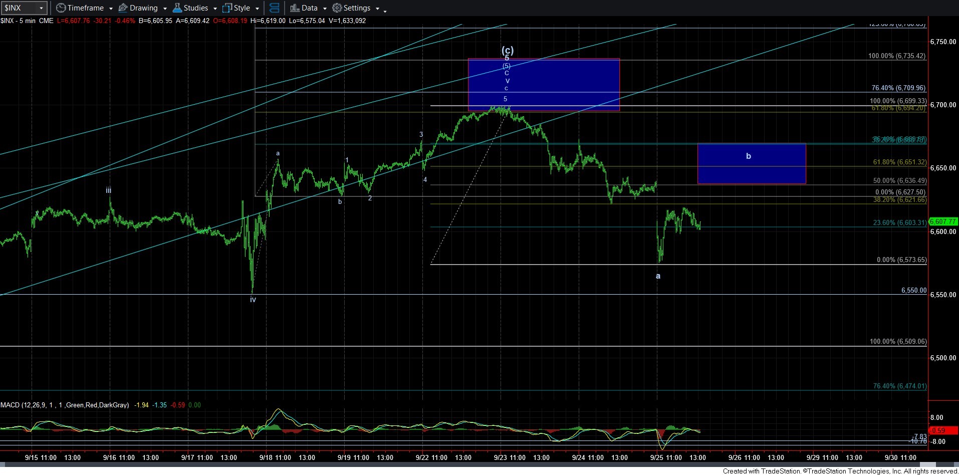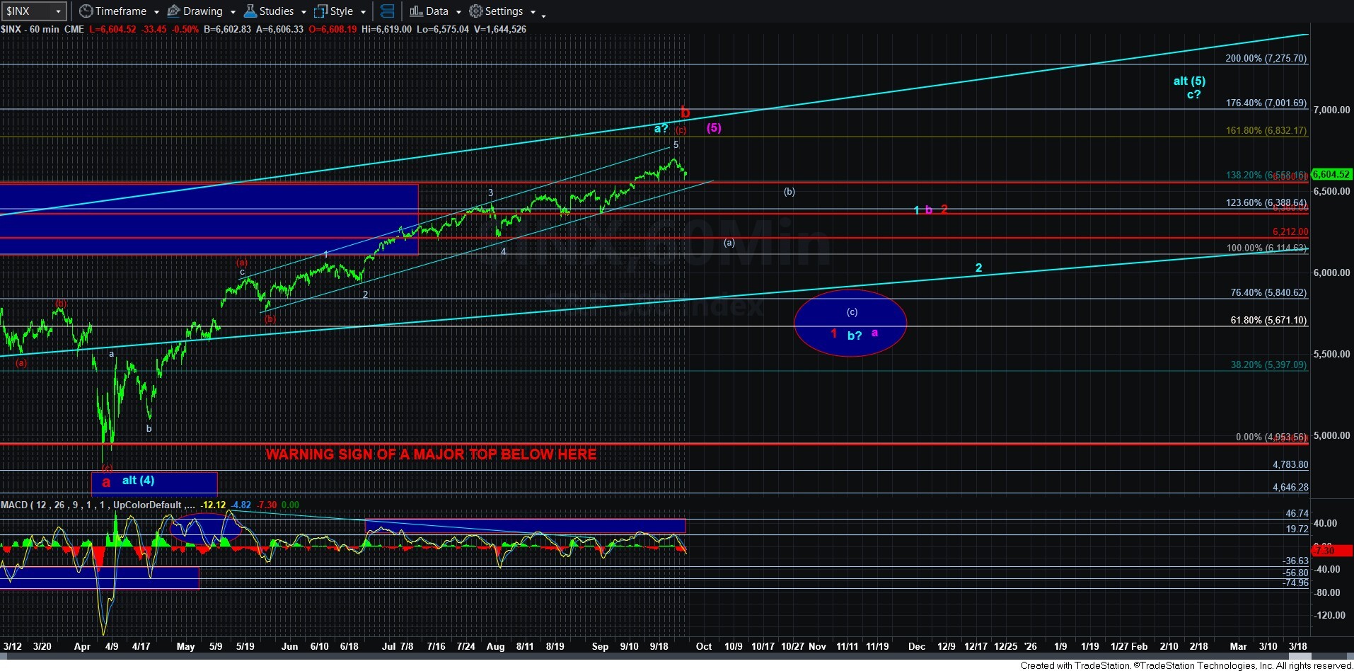 “I cleaned up the 60-minute SPX chart a bit and added the main supports in bright red. We start with 6550SPX, which also coincides with the uptrend channel. Clearly, this is the first signal of a break down based upon EW and trend lines. The second level is the 6360SPX region, and, of course, followed by the very important 6212. If we drop in a 3-wave structure, I am going to assume 6212SPX is going to hold on the first test, as that is a likely target for an (a) wave, as shown.