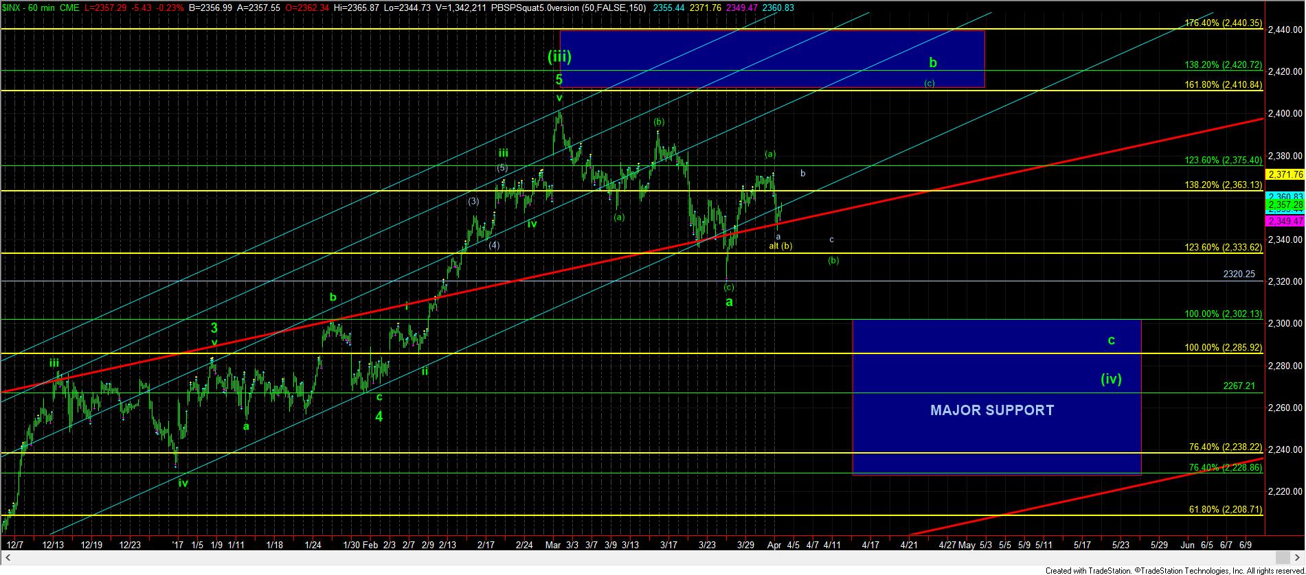 To reiterate what I noted this past weekend, as long as we remain over the 2333SPX level, I am going to expect another rally higher in a (c) wave for this green b-wave. And, that b-wave can still strike a higher all-time high, as we have discussed many times in the past.