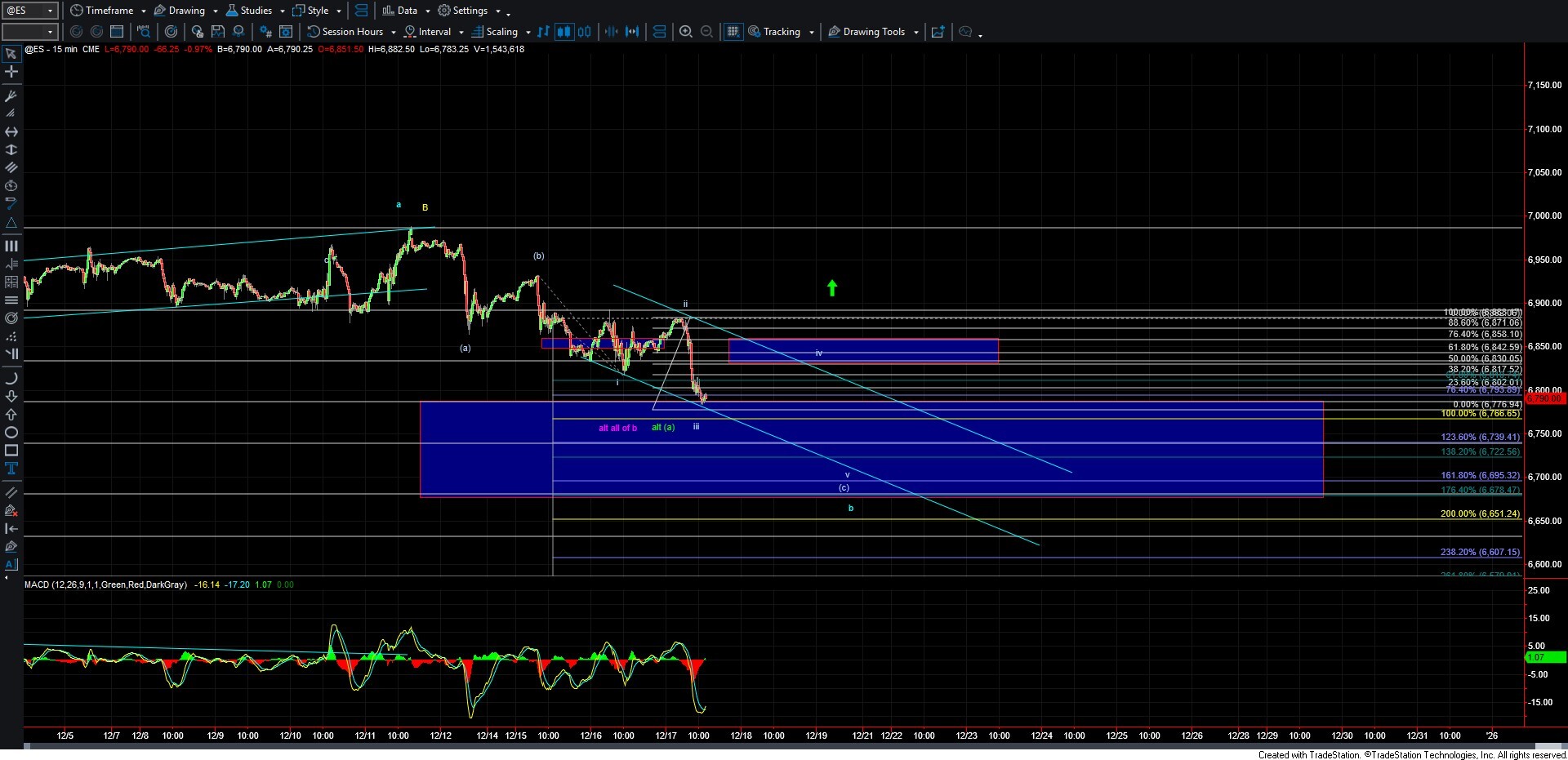 The bottom line for this count is that as long as we remain below the 6,883 level, and ideally below 6,858, I believe we likely have a bit more work to do before this corrective move to the downside is complete.
