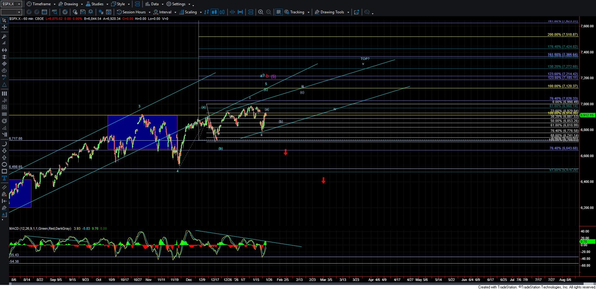 The key will be the structure of the next pullback. If we see a clear five-wave move to the downside, then the purple count becomes more likely, and the door remains open for a larger degree top to already be in place. If, however, the next pullback unfolds in three waves, then the probability shifts toward the white count and a push to new highs in the days and weeks ahead.