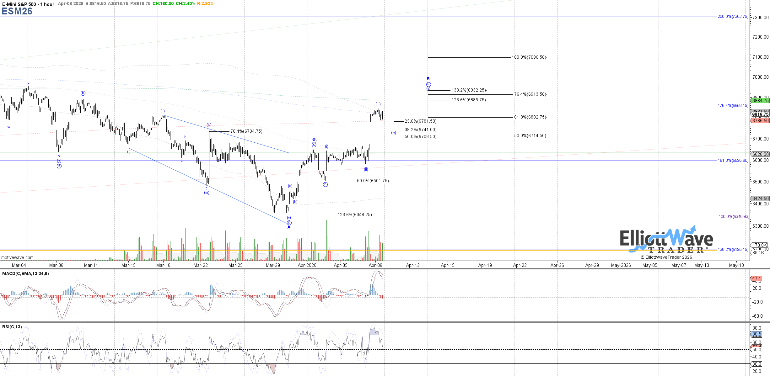 Overall, it continues to look like the .764 retrace at 6913.50 is a reasonable expectation currently for price to reach before all of wave c of B completes.