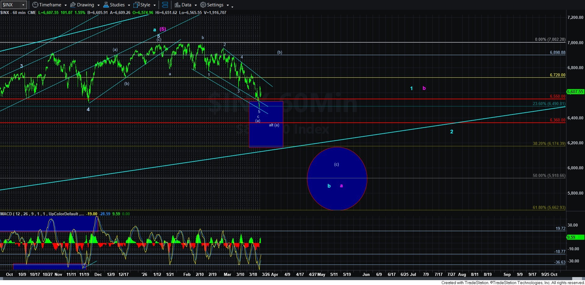 Alternatively, if we break down below the morning low, then it means this (a) wave has not yet completed, and any further decline would simply extend this (a) wave, with the potential we can still see the ideal target for the (a) wave, being the .382 retracement of the rally off the April 20205 low. But, for now, this is just our alternative. As long as we remain over the support box noted on the 13-minute ES chart, I am looking up towards the (b) wave target box.