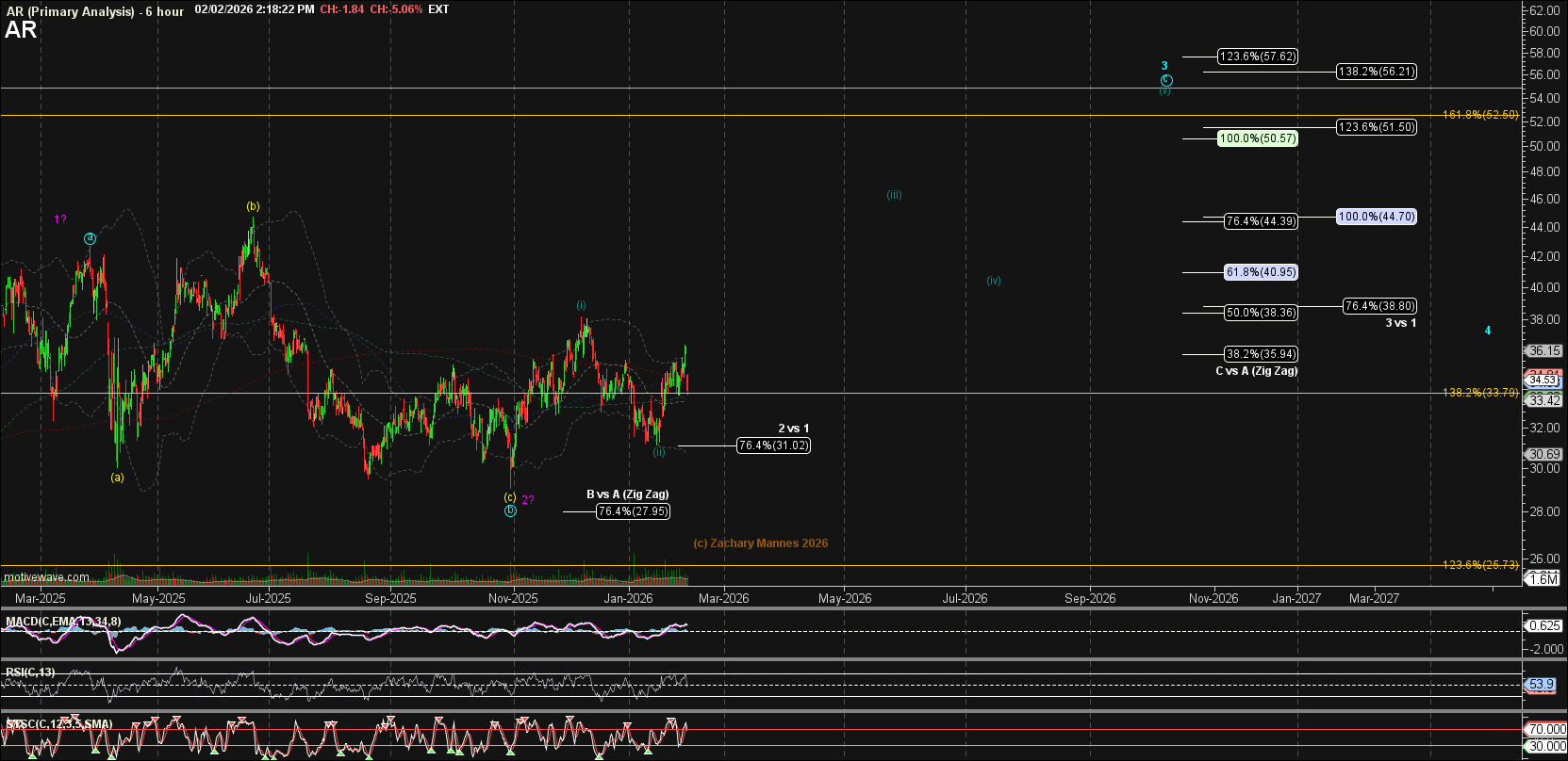 Rather than reacting violently to each fluctuation in energy prices, AR has started to move with greater organization. Pullbacks are being contained rather than extended. Advances are followed by consolidation instead of immediate rejection. These are often early signs that corrective pressure has largely run its course and that new positioning is forming beneath the surface.