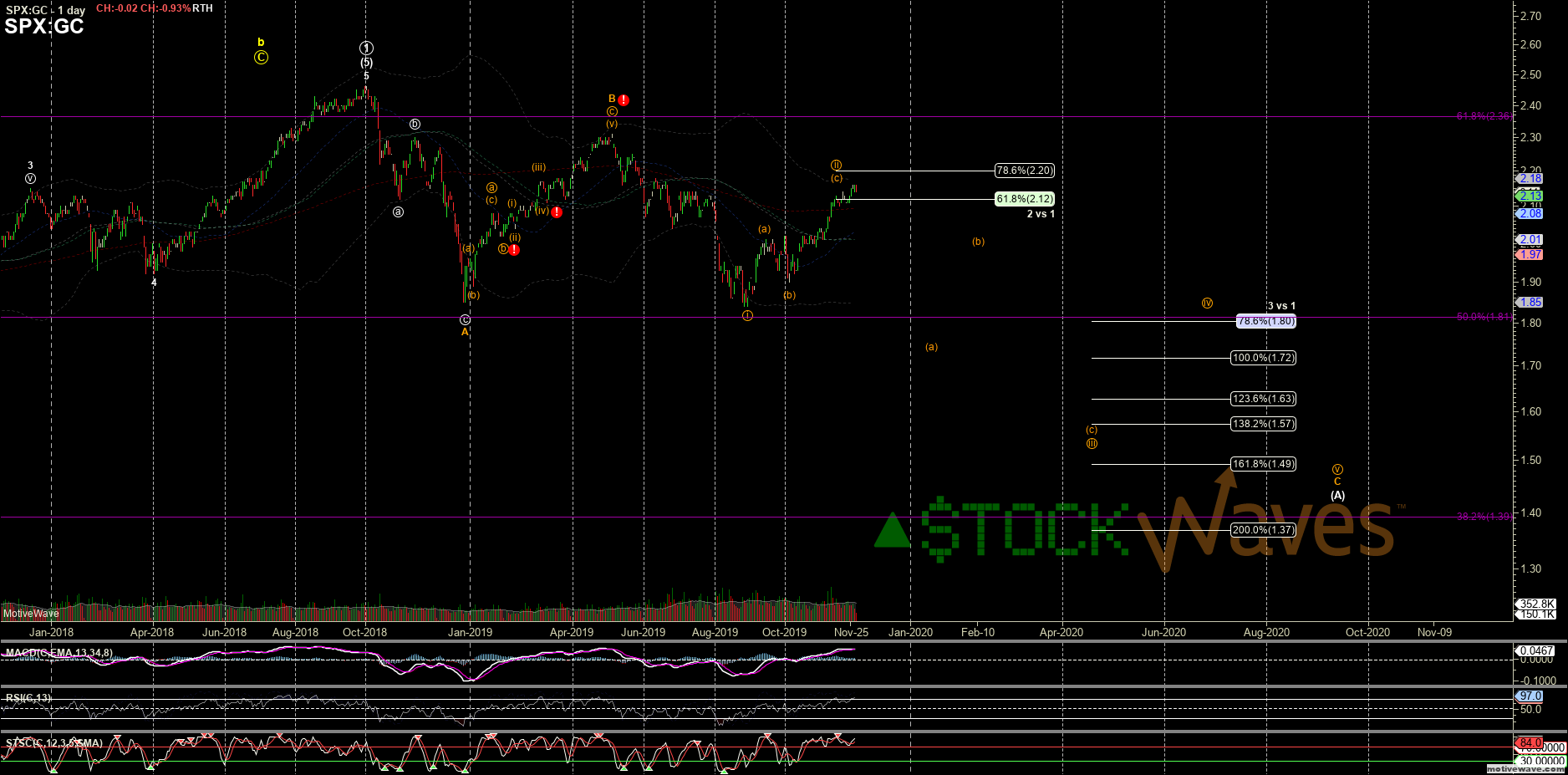 As it is now more likely that we see at least a (iv)-(v) of an Ending Diagonal extension of v of 5 of (5) of P.3 off the June low, or the slightly more complex ED fractal to 2015 for the whole 5th that Garrett has been tracking (shown in purple). I am adjusting my larger Sentiment chart ("Alt 10") to push the path for Primary 4 further to the right since it will need to restart. As discussed on the Beginner's Circle Webinars it is possible it still tries to complete into the November 2020 #Catalyst but that looks a bit too compressed to be looking for from the start when we have not yet even completed the EDs or broken any support.