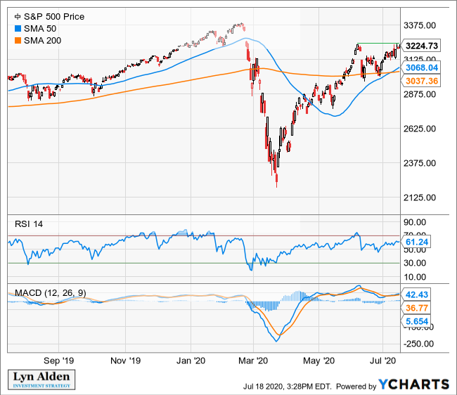 We’re at a pretty critical juncture for the market. The S&P 500 is testing the mid-June high, and has a golden cross in place (50-day moving average crossed above the 200-day moving average), the daily RSI isn’t overbought, and MACD looks okay.