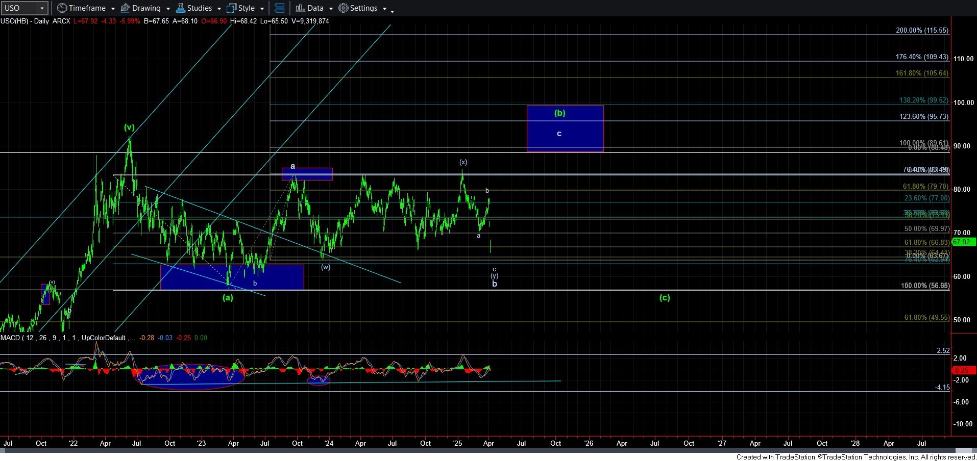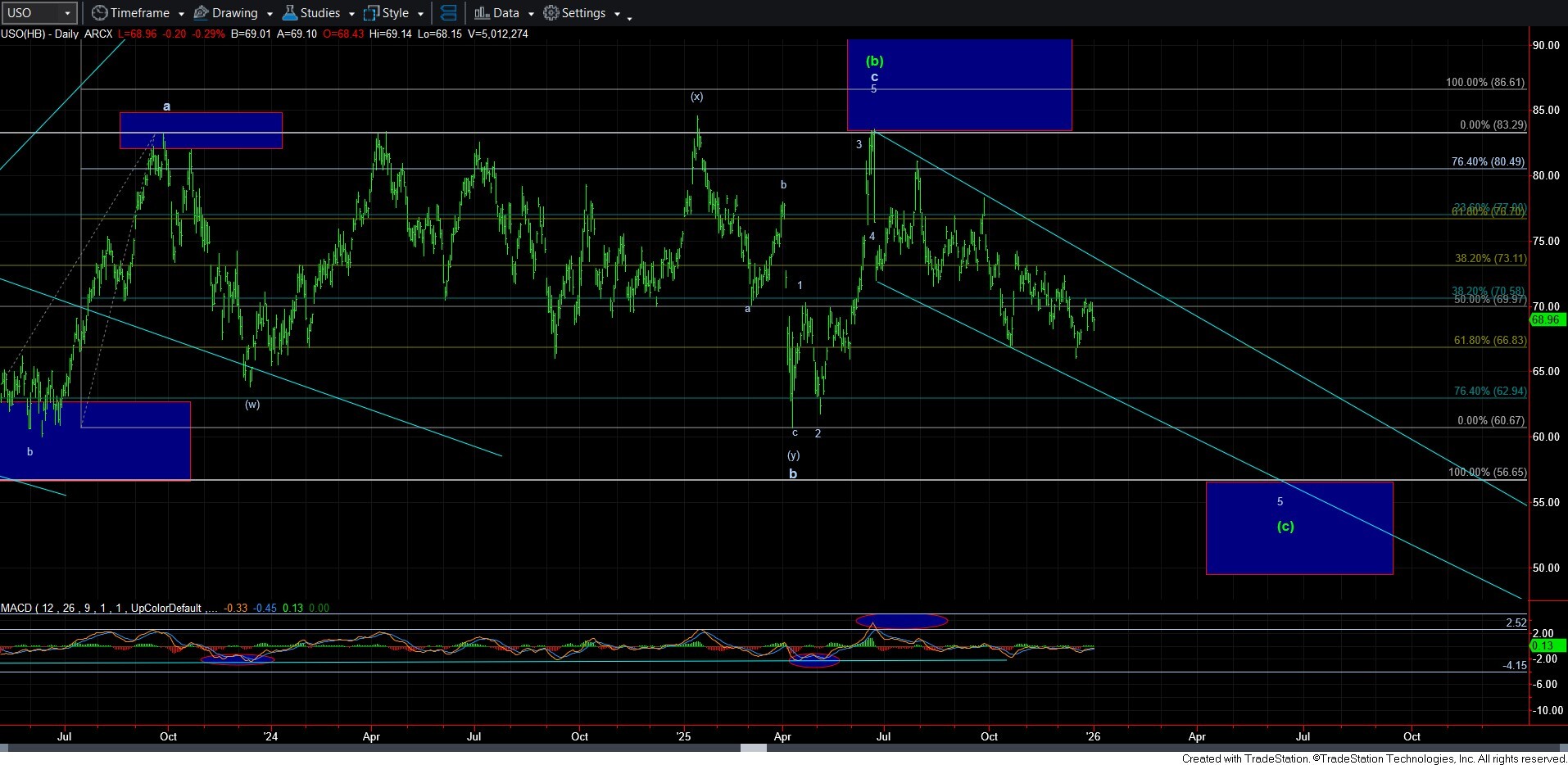 So, as the market continues to make its way down to our target for USO below 60, you will likely continue to see many up/down machinations, as the structure is likely taking shape as a very complex ending diagonal to our target. But, ultimately, the structure is pointing us lower in the coming months, which will likely lead to an amazing buying opportunity once this decline structure completes.