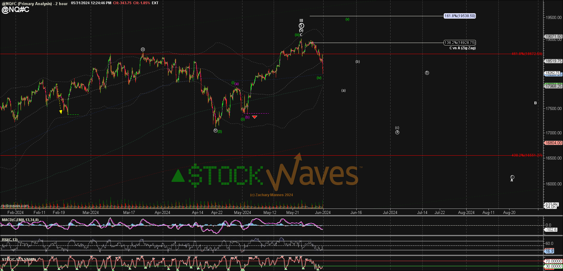 NQ - like ES is (so far) only 3 down, but accelerating... ⚠️ this is the possible support zone for a green (iv) of an ED off April, but a green (v) is certainly NOT reliable.
