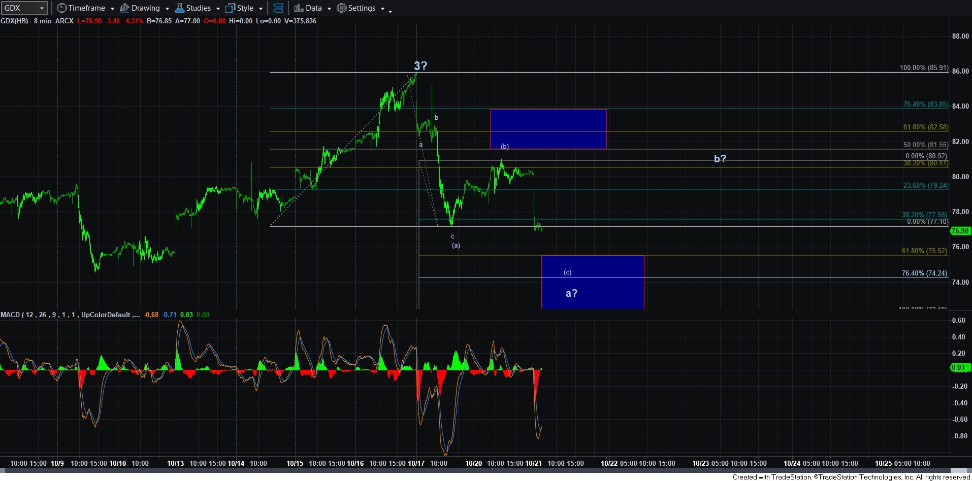 I will personally begin scaling into a long position in silver, with the expectation that this may be only an a-wave of a bigger wave (4), as I am showing on the chart. That means I intend on looking for a second buying opportunity after another b-c take shape. And, I am viewing GDX in a similar way. Lastly, gold can begin its alt v rally after we see a bit lower this morning.