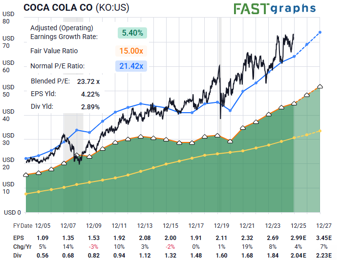 It’s a steadier chart, with less drama than KDP — but also less embedded growth optionality.