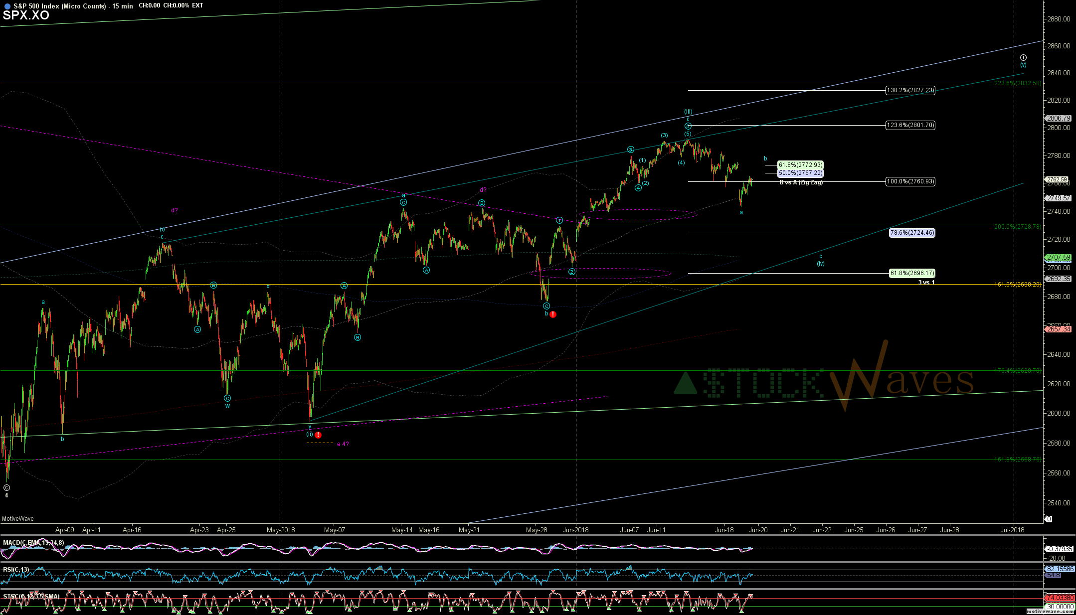 We can count this bounce off the low yesterday as another b inside the (iv) setting up another attempt at a c wave down toward 2710-2695 region.