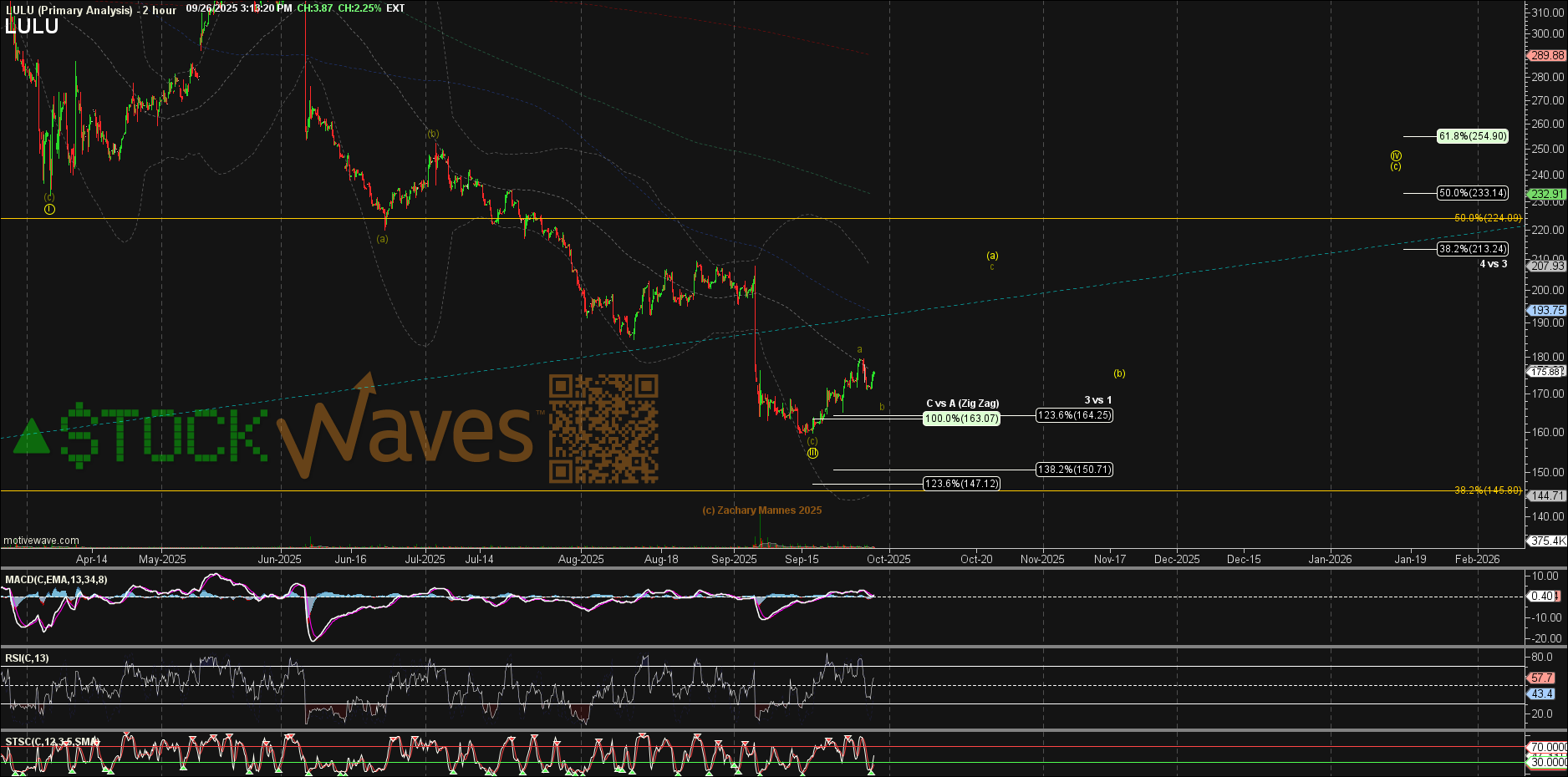 In the case of LULU shares, we have a solid base for our thesis as described above. Price is cheap relative to past performance. And although we do not have the guarantee of future returns, shares are a bargain at the moment. As long as price stays above the recent low near $160, we anticipate a near-term rally. From there, we will let the structure of price dictate if there is to be more than a four. Breaking above $255 would be a strong indicator of this and ultimately a move back above $340 is the confirmation of an important low already in place.