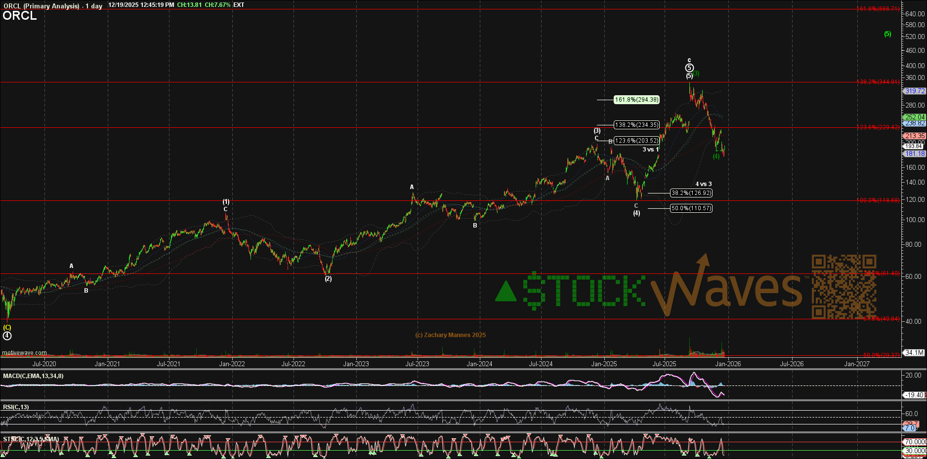 Something key for ORCL has just taken place in that structure. Let’s see this illustrated for us in the price action down from the most recent high struck near $350 back in September. Shares have now seen a price cut of some more than -40%.