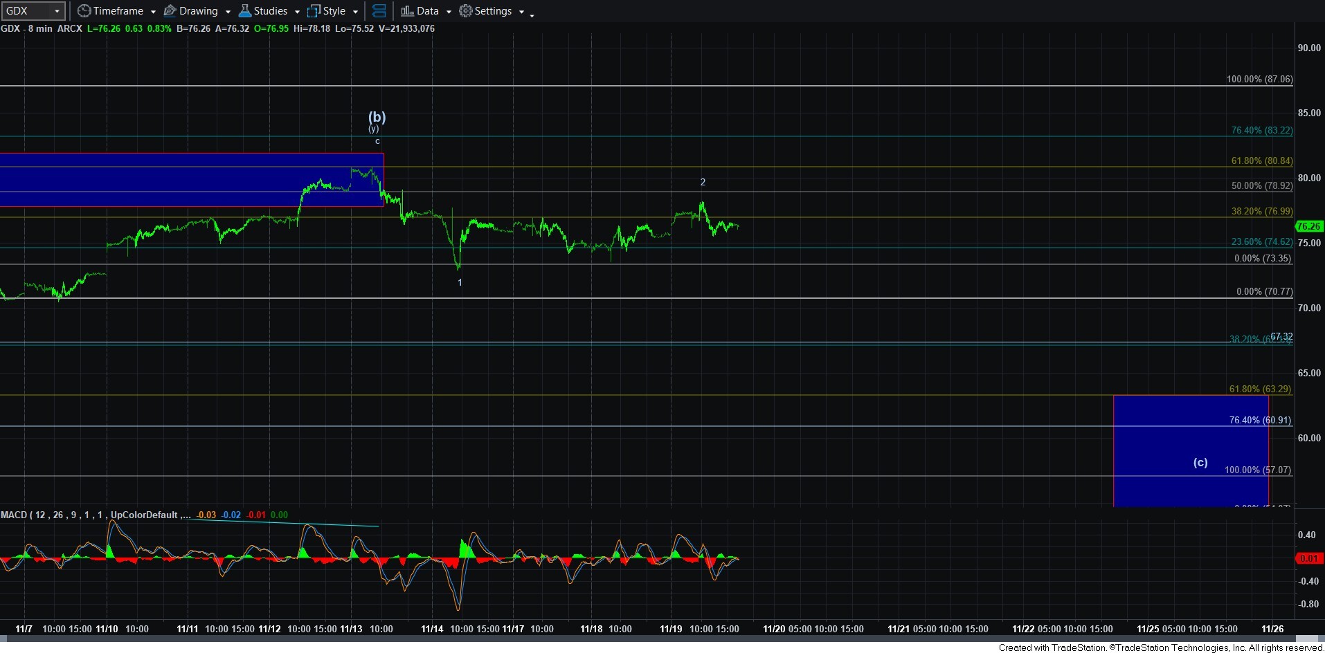 While I can count both gold and GDX as a potential i-ii down in the continuation of their respective (c) waves down, silver would really count best with one more rally to complete a deeper wave 2.