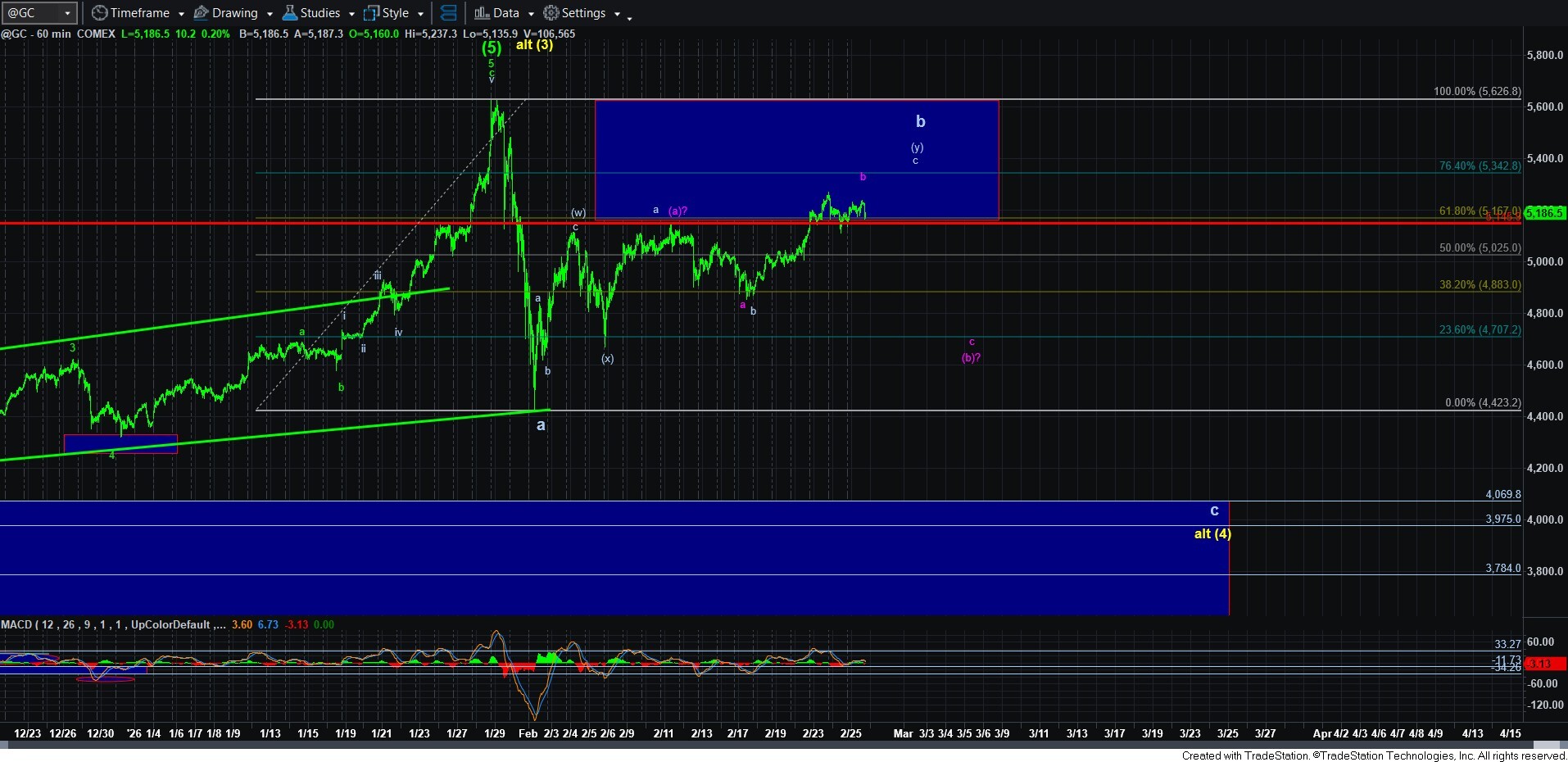 We will have to see how the c-wave takes shape to determine with which c-wave we are dealing. The closer we can push to the .764 retracement in the 5340 region, the more likely this is the bigger b-wave.”