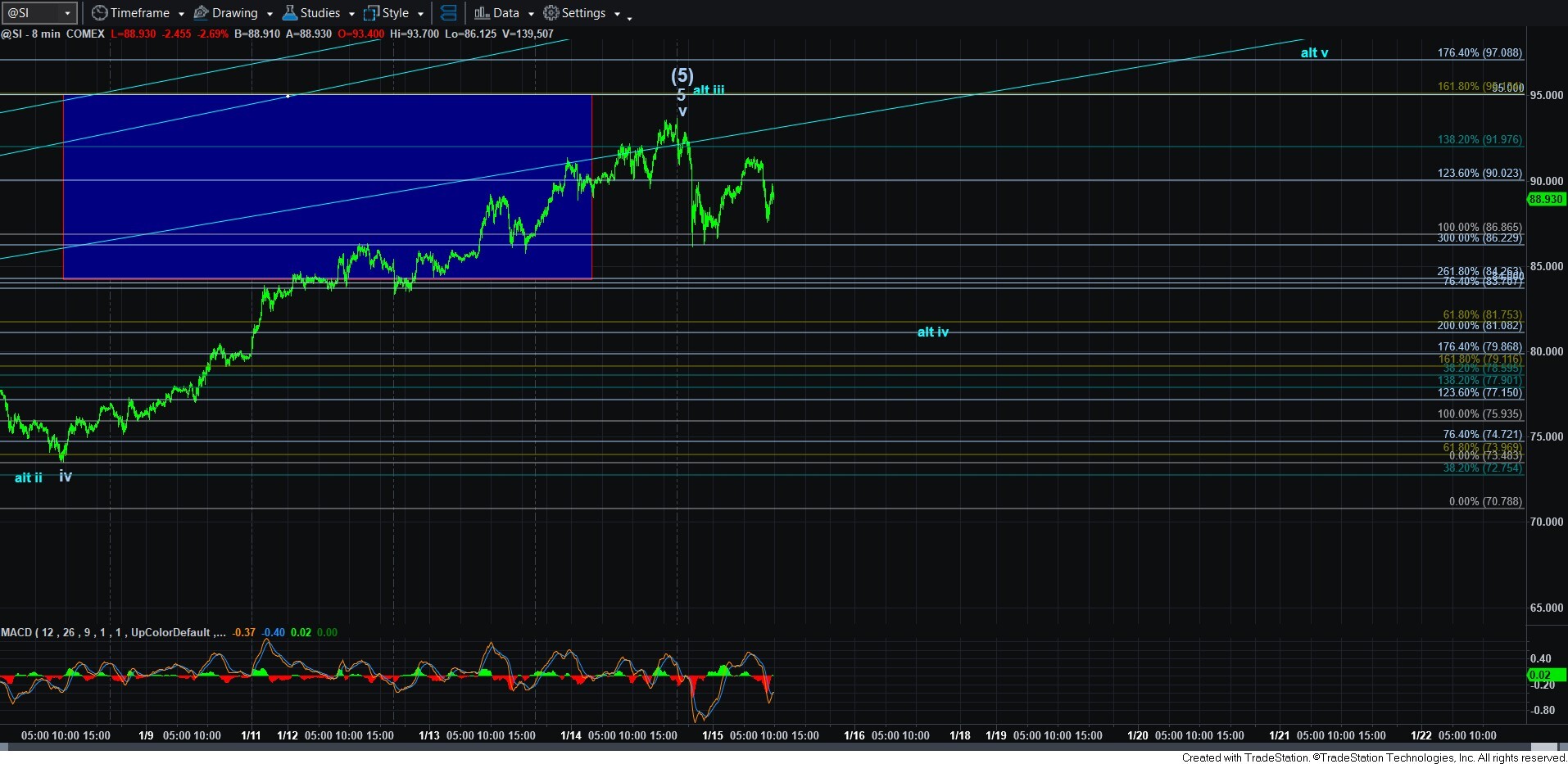 Silver has more than enough waves in place as well. But, due to how high we have come in this segment of the rally, I am also leaving the door open to the iv-v shown on the 8-minute silver chart.
