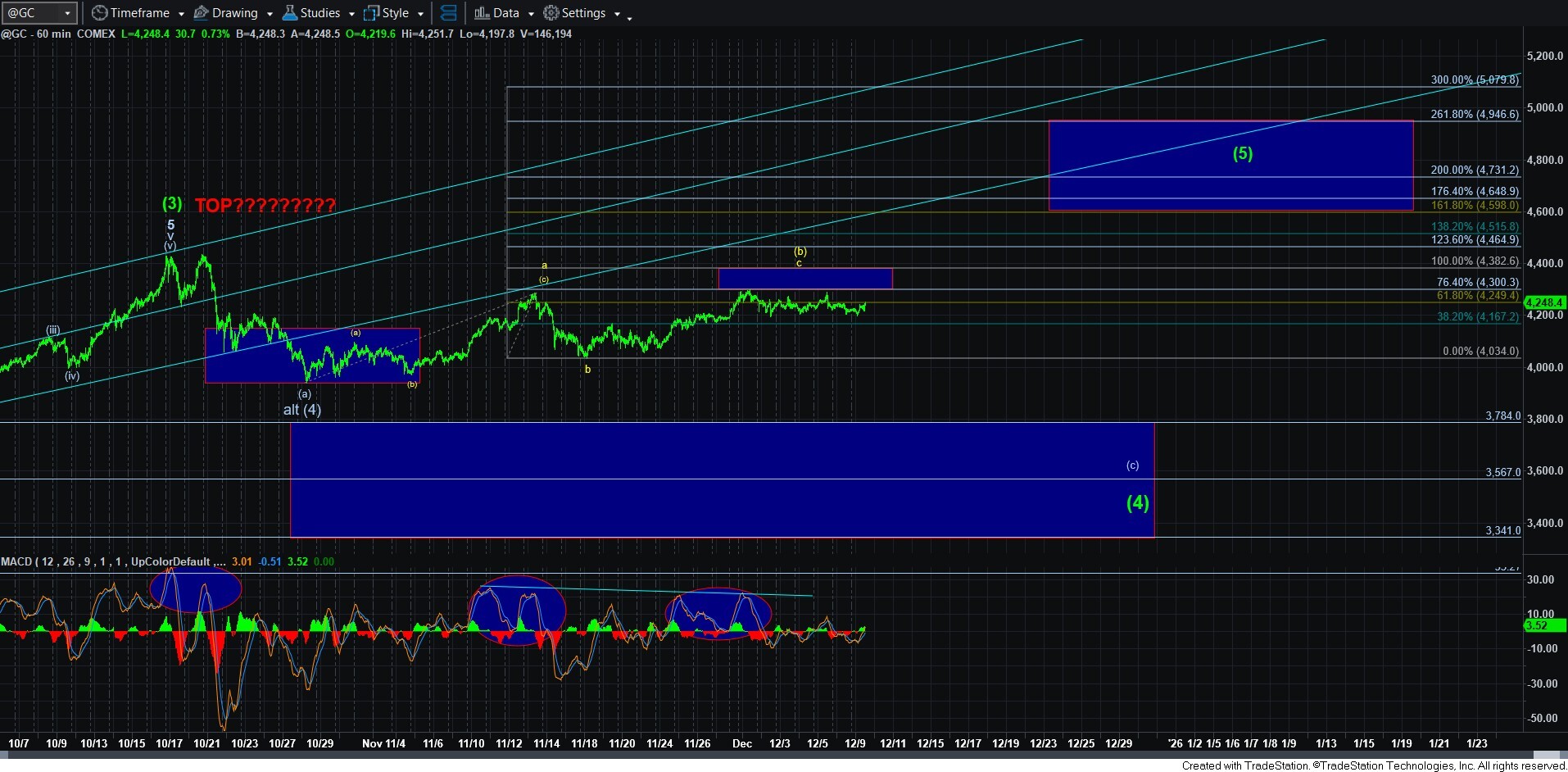 And, if you feel the need to add hedges to your portfolio, you usually focus on the weakest of the charts, which as I have noted a number of times as well is the gold chart. As long as gold does not exceed its resistance box on the 60-minute chart, I full expect a (c) wave decline.