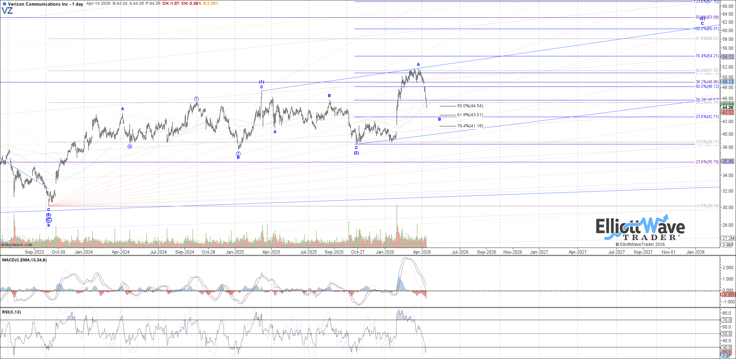 Verizon's pullback from $52 looks like a casualty of the Starlink narrative. The structure of price suggests the market may be misreading the threat.