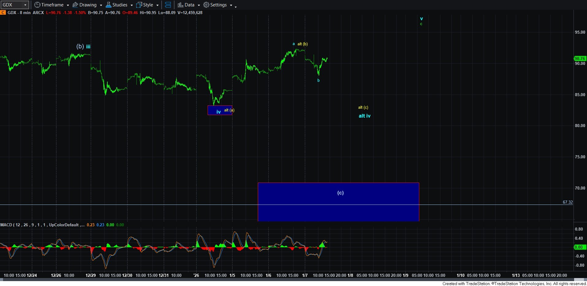 So, as with silver, I do not have any strong signals that suggest this b-wave has completed.